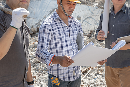 解体工事には、周辺地域への影響を含む総合的な調査が必要です。現場周辺の環境を綿密に調査・検討したうえで、環境への影響が最も少ない工法を選択し解体工事に取り掛かります。