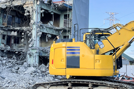 一般住宅から大型物件まで、あらゆる建物の解体工事を行っています。工事にはそれぞれの建物構造に合った重機を使用しています。